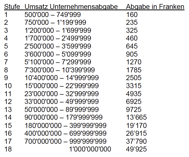 Die Abgabe hängt vom Umsatz ab – das bedeutet, auch wenn ein Unternehmen keinen Gewinn macht, ist die Steuer in folgender Höhe zu bezahlen: