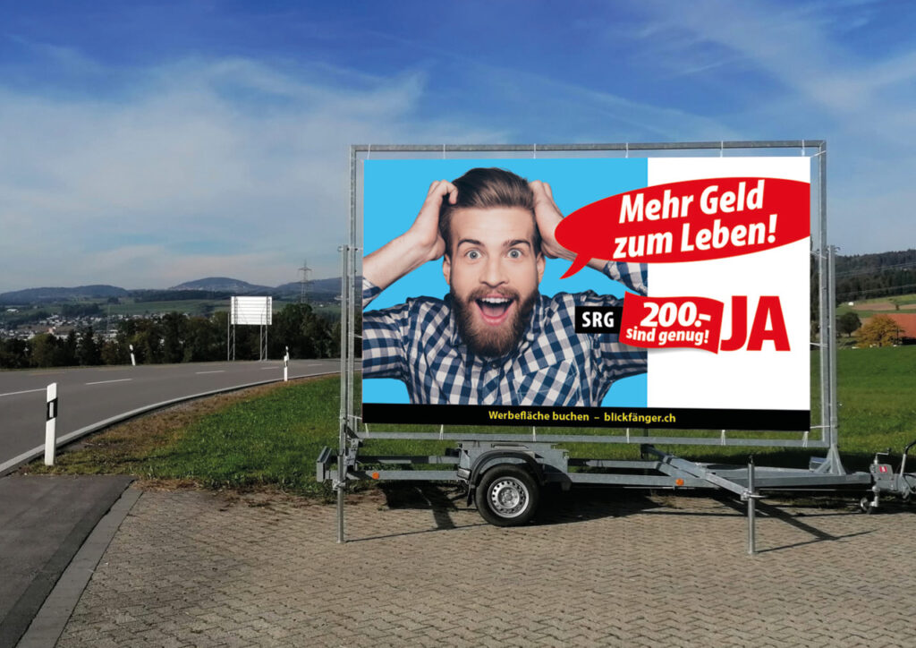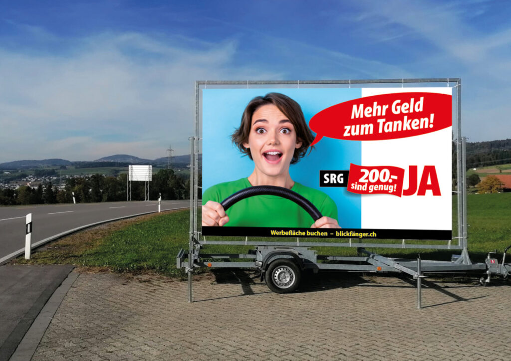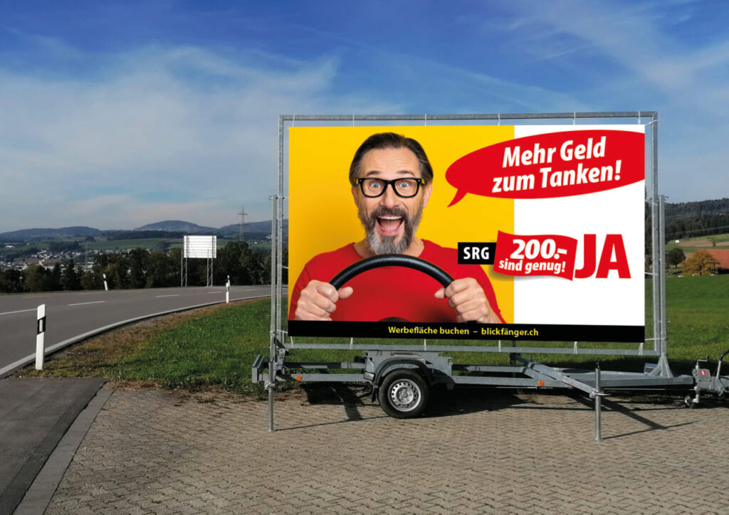 So gehst Du vor, um einen Blickfänger – die grössten doppelseitigen mobilen Plakatflächen der Schweiz – in der Region Deiner Wahl für eine oder mehrere Wochen mit einem Kampagnen-Sujet Deiner Wahl zu sponsern: