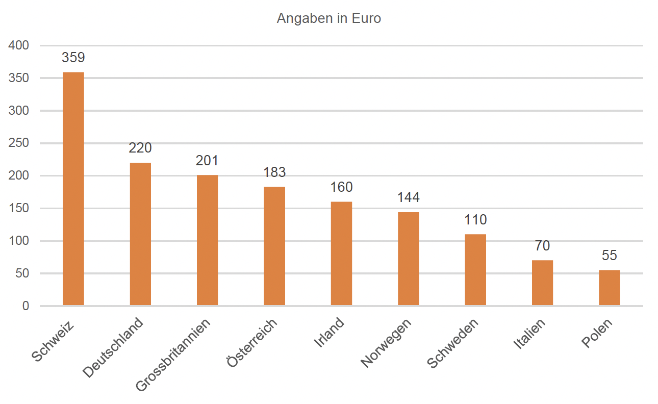 Die Schweizer zahlen die weltweit höchsten Radio- und Ferngebühren, wie dies die nachfolgende Grafik, zeigt:
