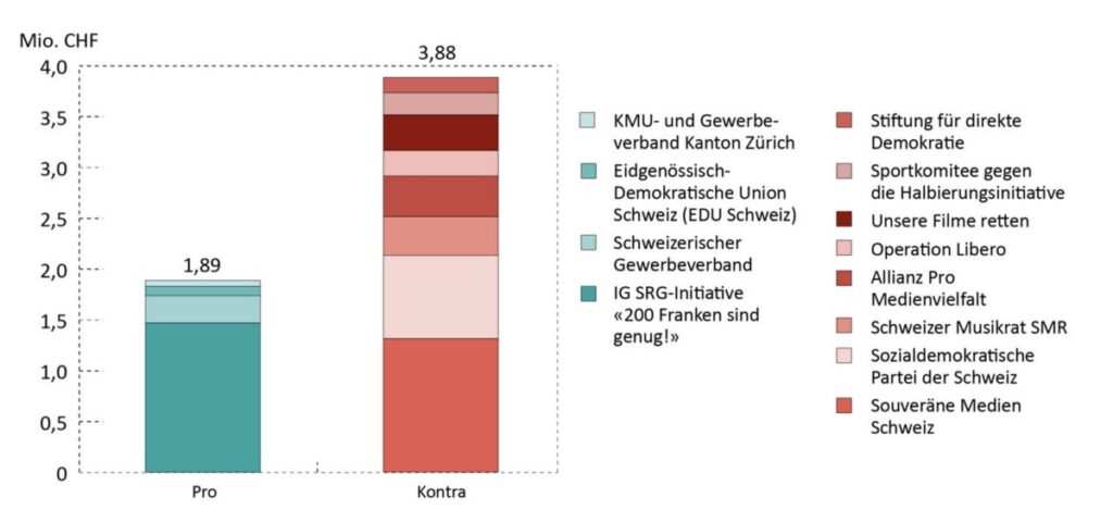 Anfang Februar wurde anhand des Berichts der Eidgenössischen Finanzkontrolle (EFK) klar, was sich abzeichnete: Die beinahe unzähligen Kampagnen der Initiativgegner verfügen über rund doppelt so viele Ressourcen wie die Ja-Kampagne. Insbesondere linke und progressive Organisationen (SP, die Stiftung direkte Demokratie, Operation Libero und weitere) greifen tief in die Taschen, um sich für die SRG zu engagieren. Dies dürfte auch damit zusammenhängen, dass über die politischen Themen dieser Organisationen bei der SRG meist wohlwollend berichtet wurde.